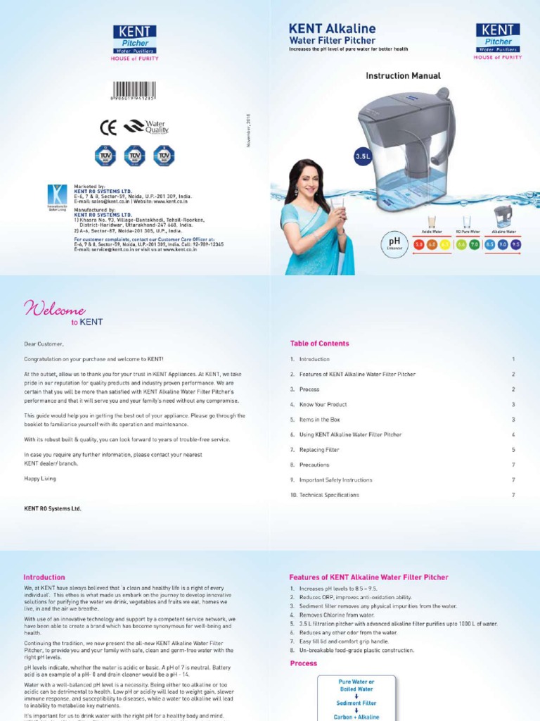 Kent Alkaline Water Filter Pitcher Brochure PDF
